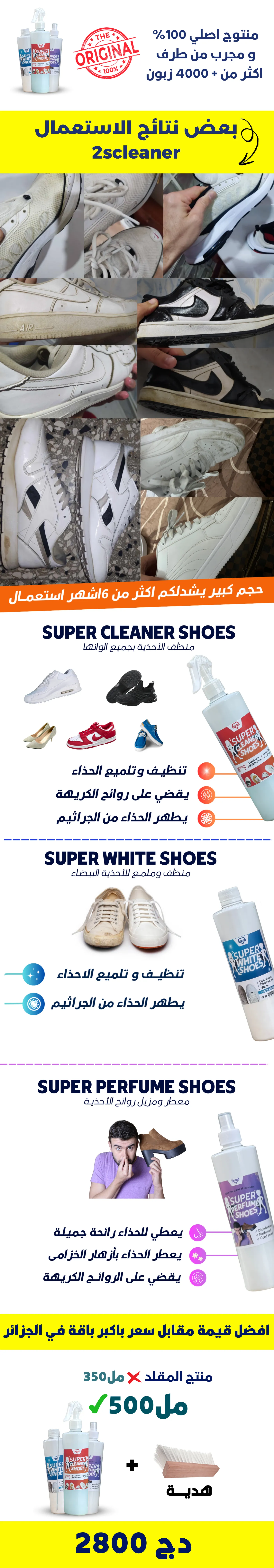 باقــة تنظيف الاحذية 2scleaner تقدم افضل قيمة مقابل سعر باكبر باقة في الجزائر 500مل في كل قارورة . جميع النتائج هي نتائج تنظيف باقة 2scleaner